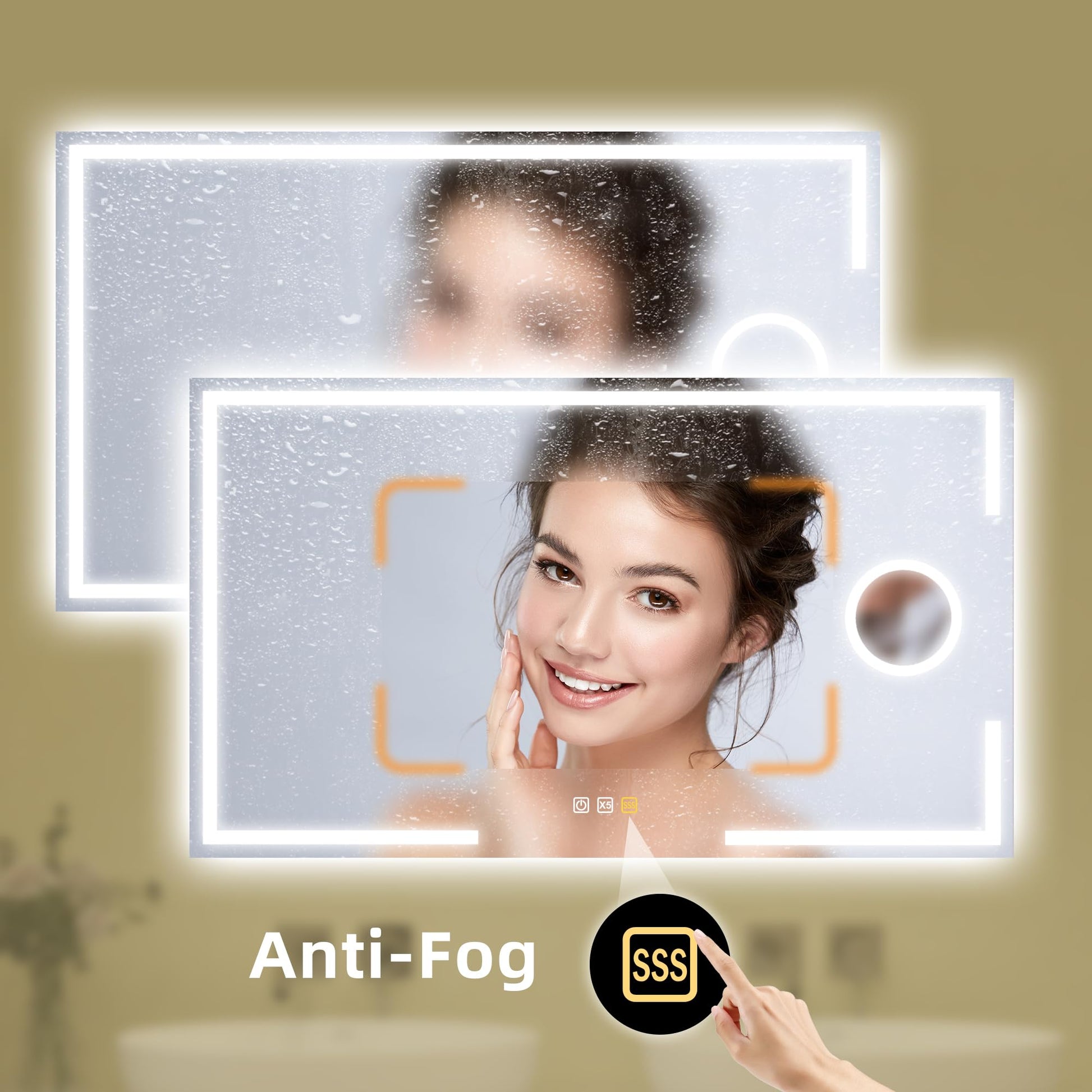 - 🌟【Anti-Beschlag-Funktion & Wasserdicht】 Die Antibeschlag-Funktion des LED-Badspiegels kann individuell gesteuert werden, was dazu beiträgt, dass die Mitte des Spiegels immer ein klares, reflektiertes Bild erhält, so dass Sie sich direkt nach dem Bad schminken können und Zeit sparen.Wasserdichte Lichtleiste nach IP65 mit einer langen Lebensdauer von bis zu 50.000 Stunden. Der Spiegel ist nach IP44 wasserdicht und somit für den Einsatz in feuchten Umgebungen geeignet.