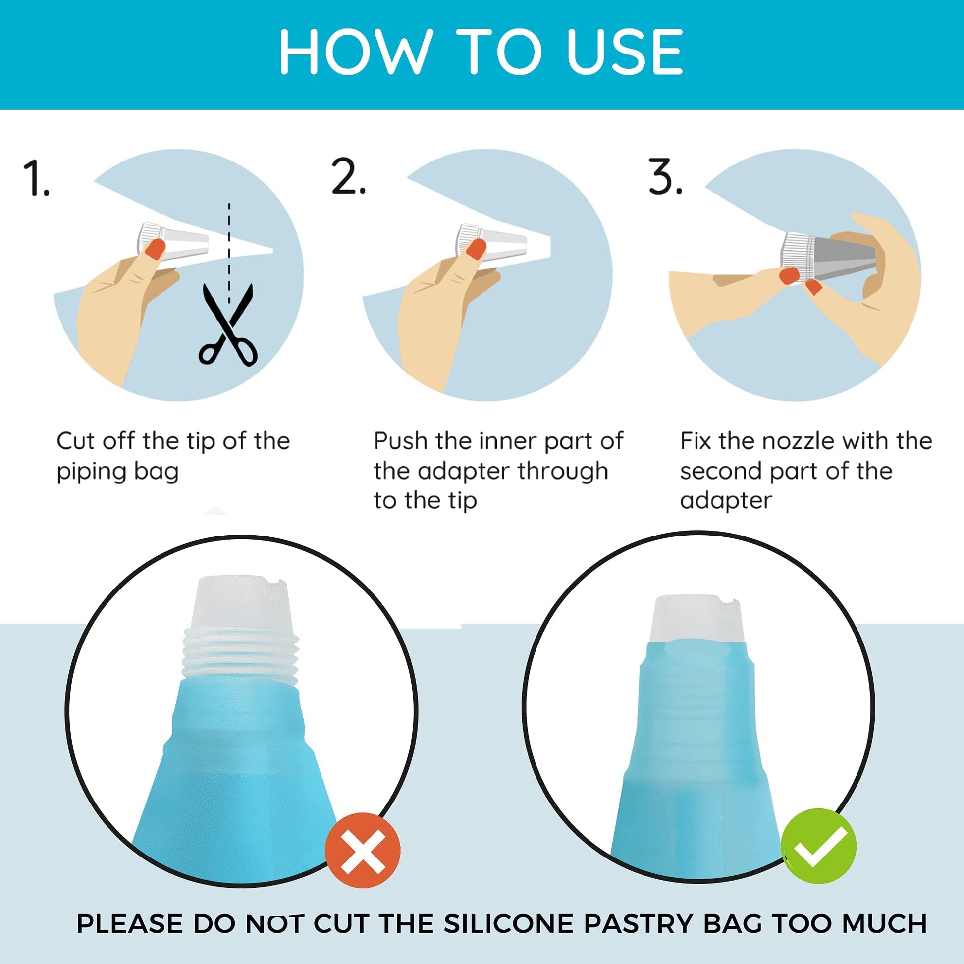 Verschiedene Tüllen: Das Set enthält 25 nummerierte Spritztüllen in verschiedenen Arten, darunter klassische, große, Ball-, russische Tüllen und Rüschentüllen - ideal für Rosen, Blätter, Sterne und Schriftzüge