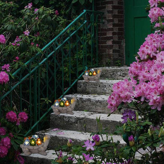 Yeomoo Solar Gartenfiguren Schildkröte Gartendeko für Draußen, mit Sukkulenten und 7 LED Leuchten Home Balkon Dekoration, Figur Kawaii Geschenke für Frauen/Mama Deko für Zimmer Terrasse