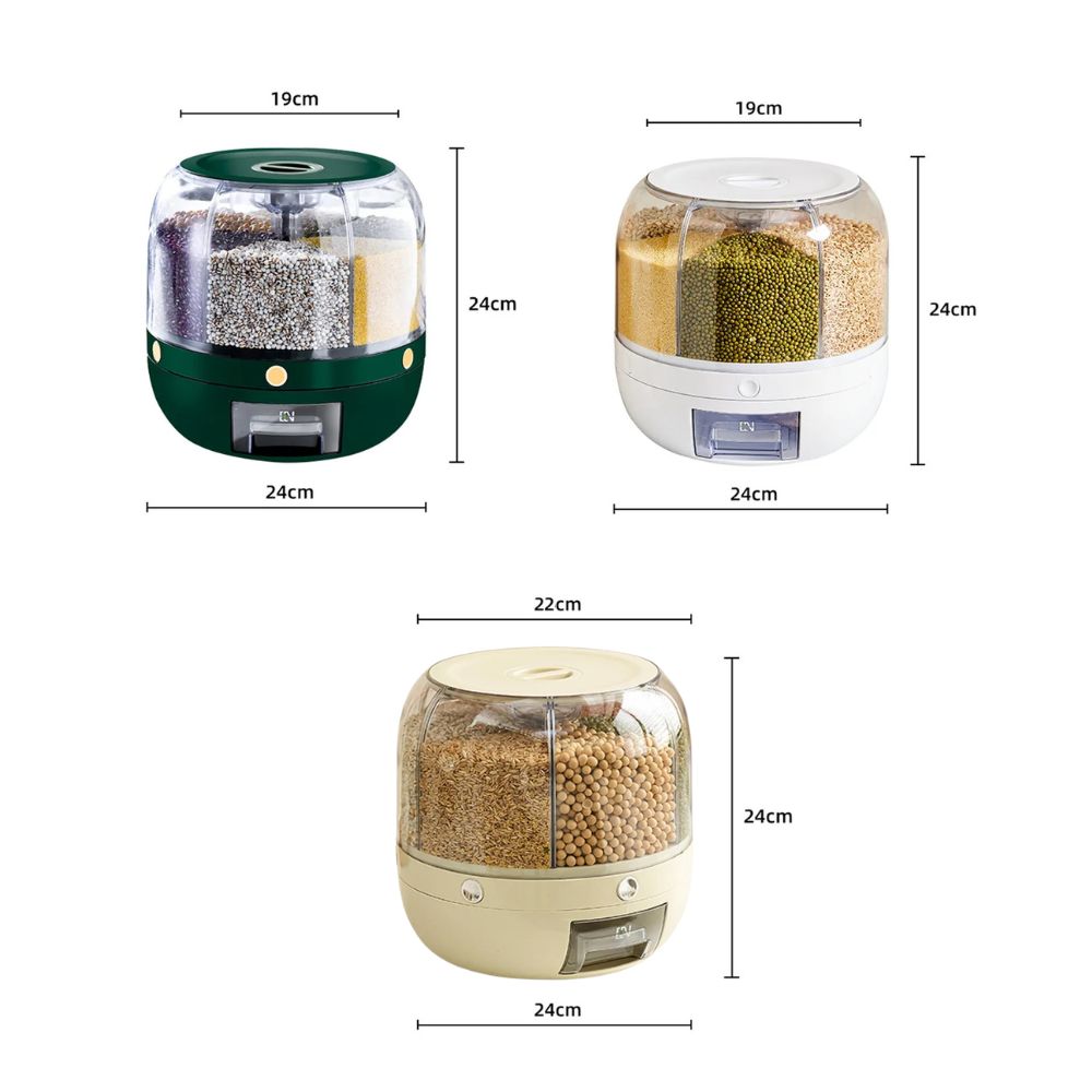 6 compartments: Ideal for storing rice, oats, mung beans, candy, dried fruits and more.