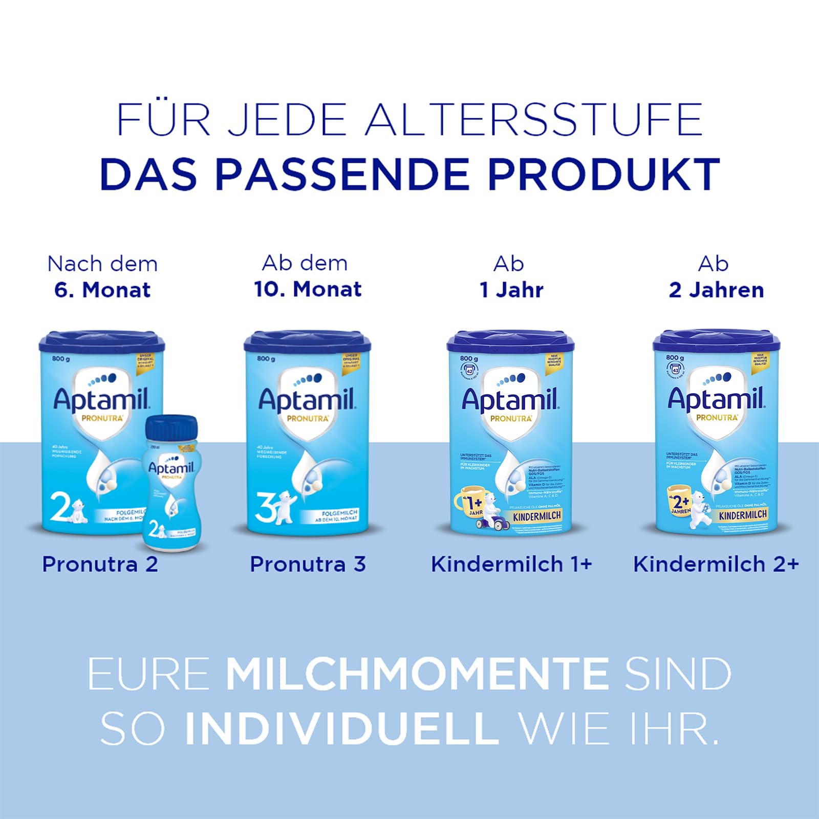 Aptamil Children's Milk 2+ is specially developed for toddlers from 2 years of age - with vitamins A, C & D for the immune system, iron for cognitive development and Omega-3 (ALA) for the brain and nerves.