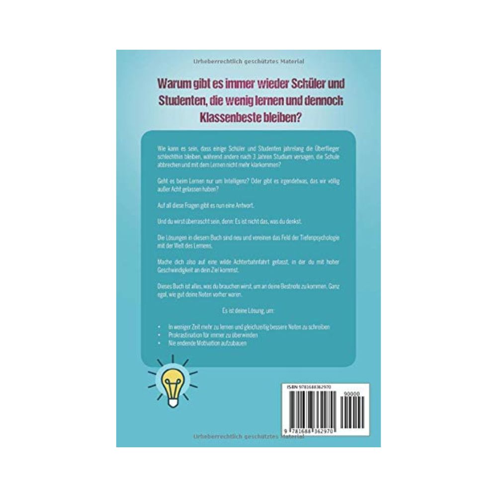 The solutions in this book are new and combine the field of depth psychology with the world of learning. So prepare yourself for a wild roller coaster ride that will take you to your goal at high speed.