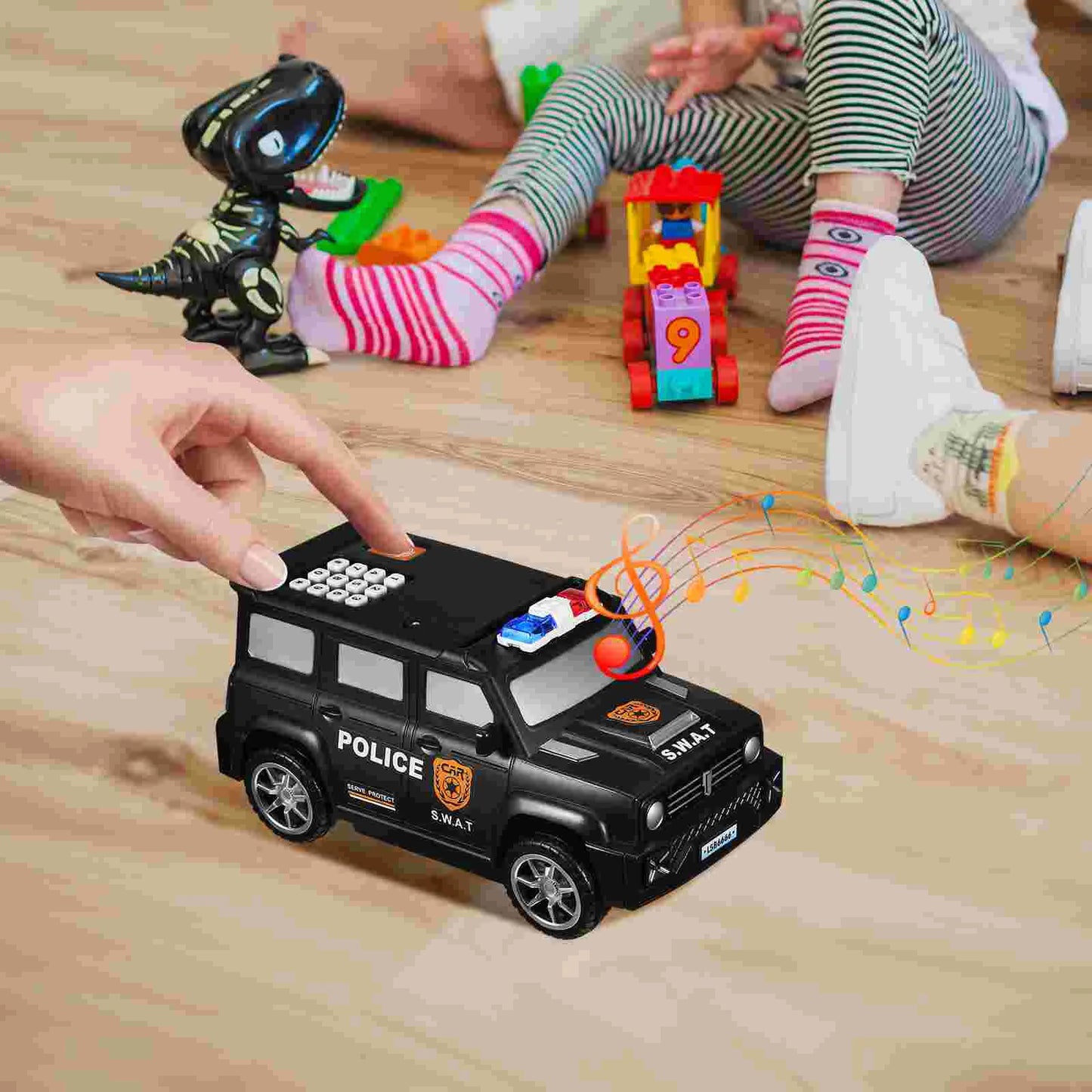 The digital Police SWAT car piggy bank with password protection and fingerprint recognition, shaped like a police car, combines practicality with creativity.