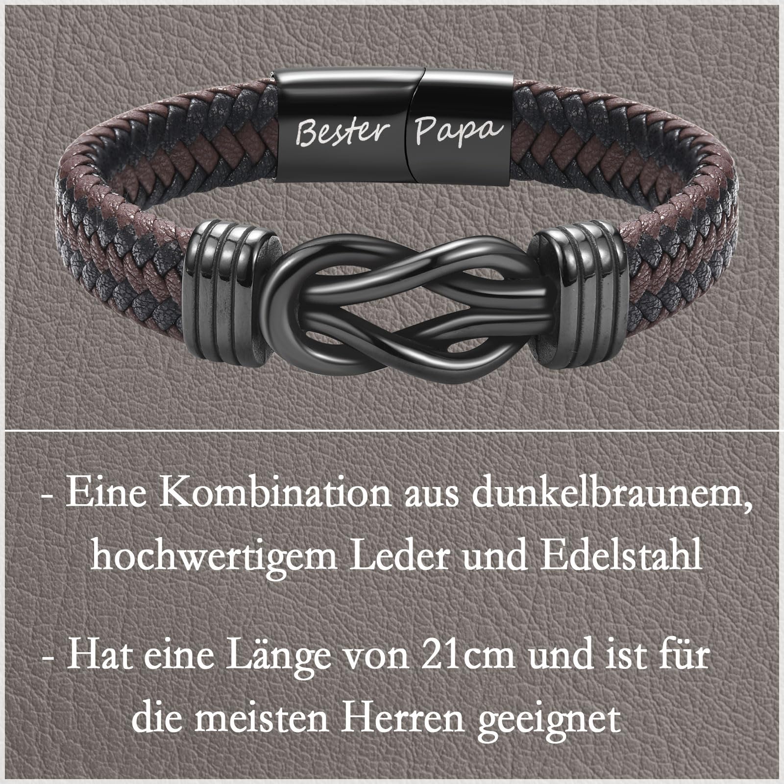 A special token of appreciation: This leather bracelet for bonus dad is not only a stylish accessory, but also a sentimental gift with a personal message. Ideal for Father's Day, a birthday, or simply as a loving surprise in between.