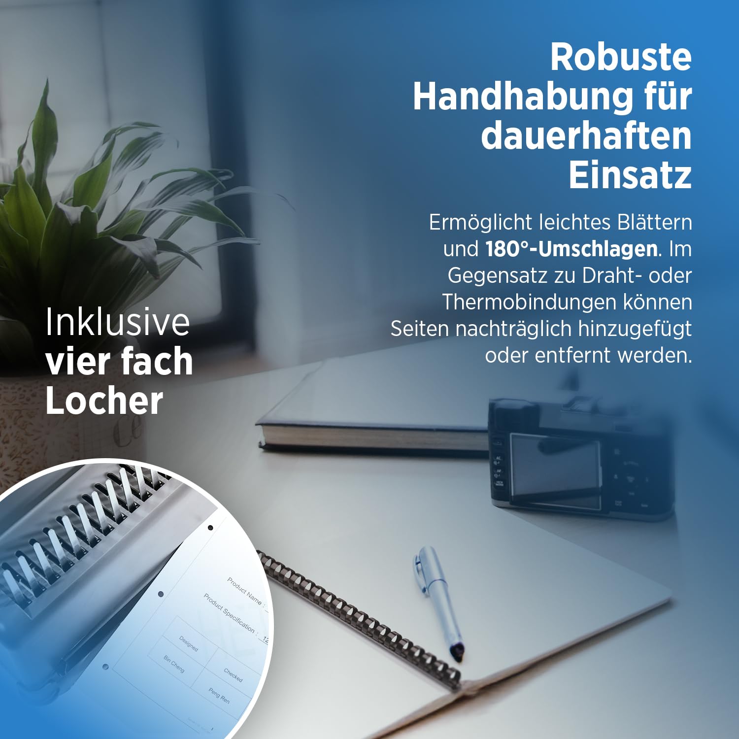 - Bind up to 350 sheets: Ideal for extensive presentations, calendars or photo books - 21-ring hole punch up to DIN A4