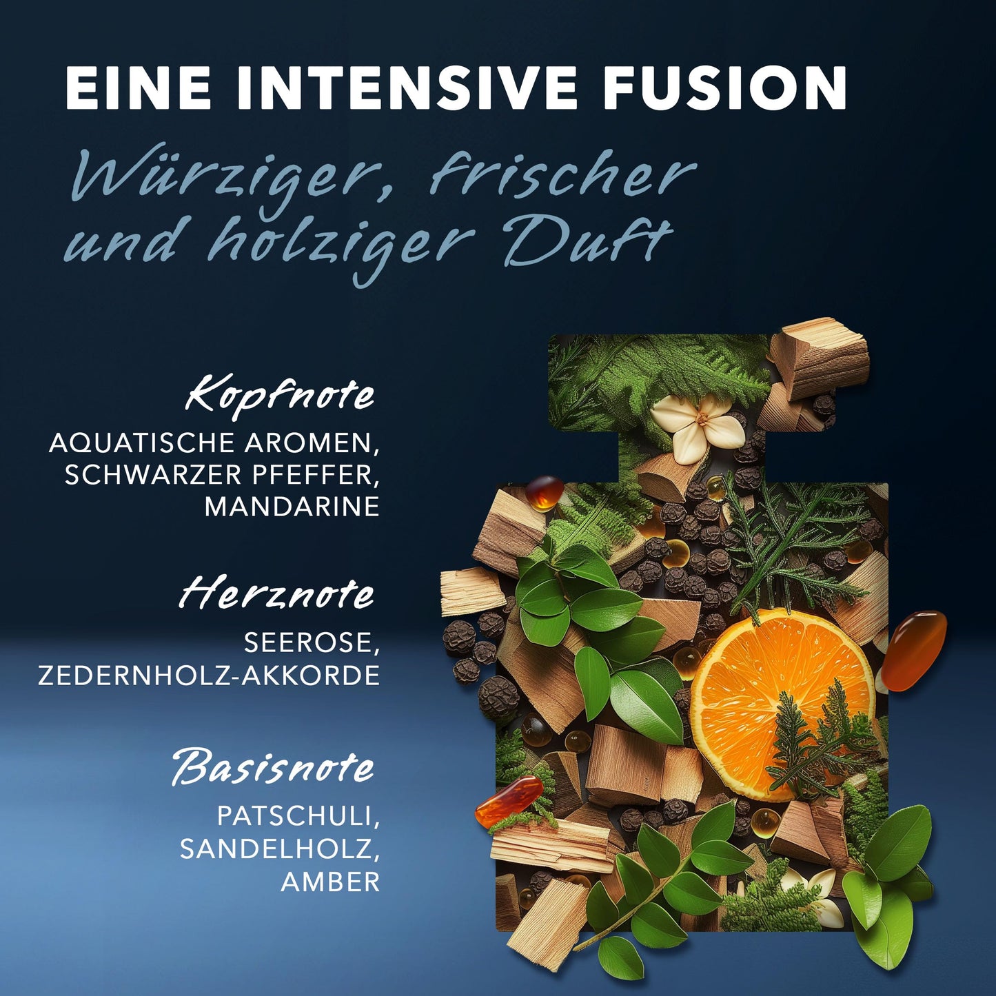 Base note: Earthy patchouli, creamy sandalwood and resinous amber round off the composition with a masculine, spicy depth.