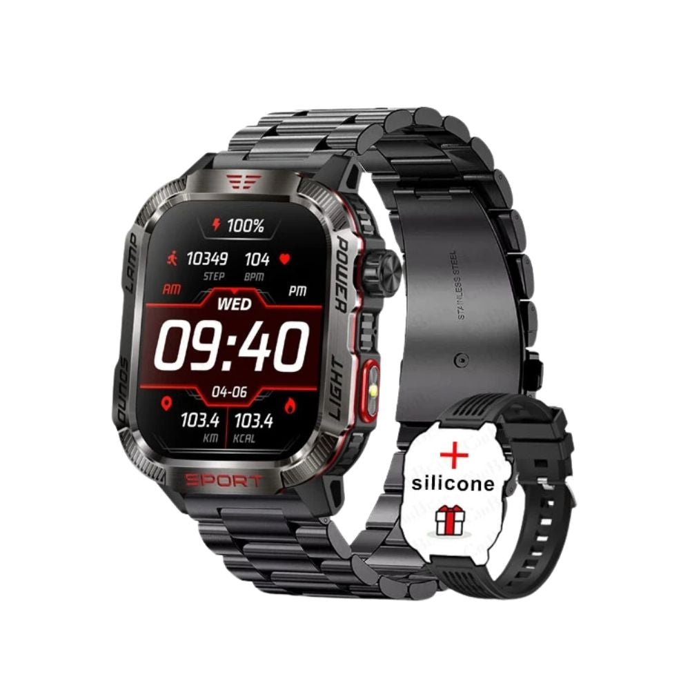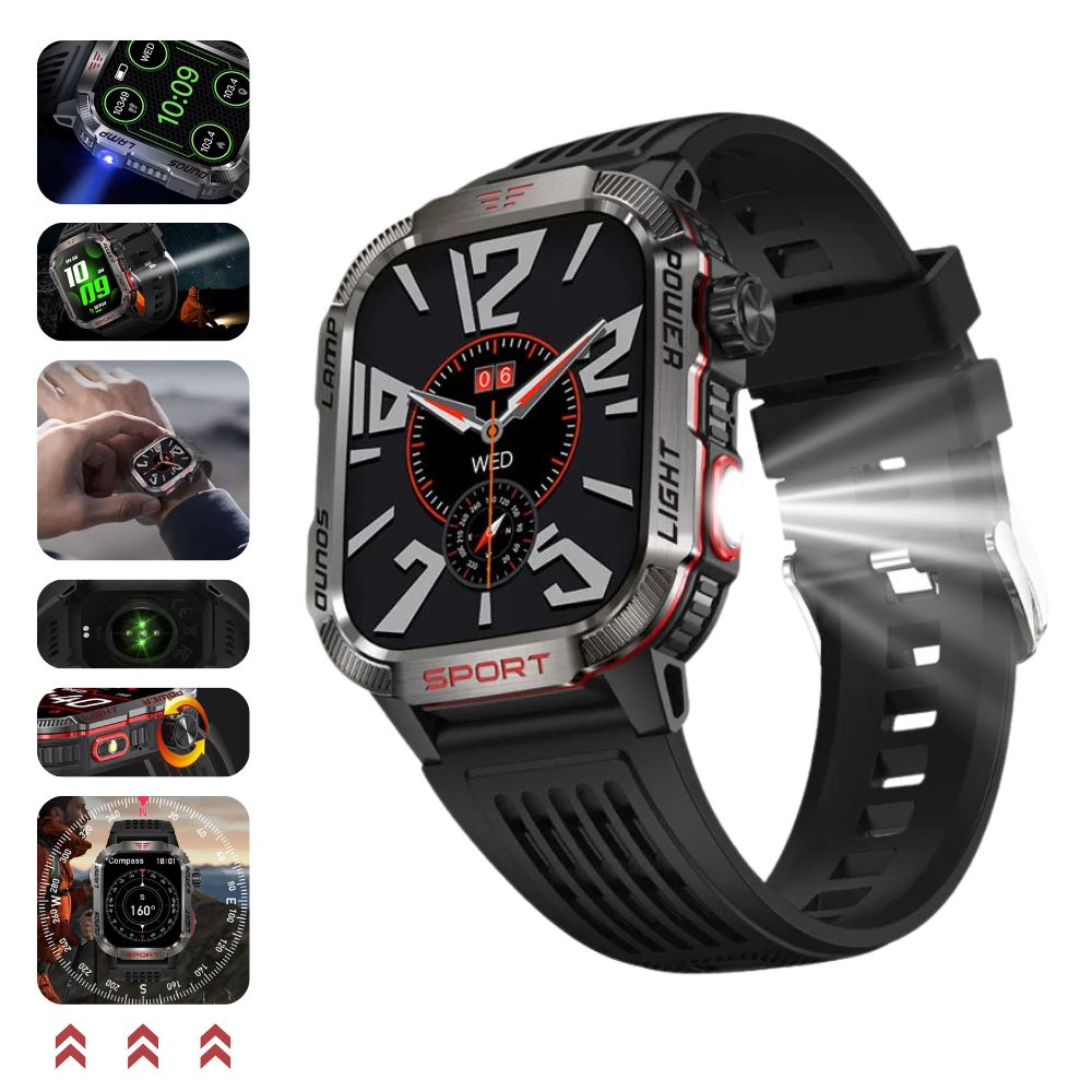 Make your everyday life smarter and your adventures safer - order the multifunctional military smartwatch today!