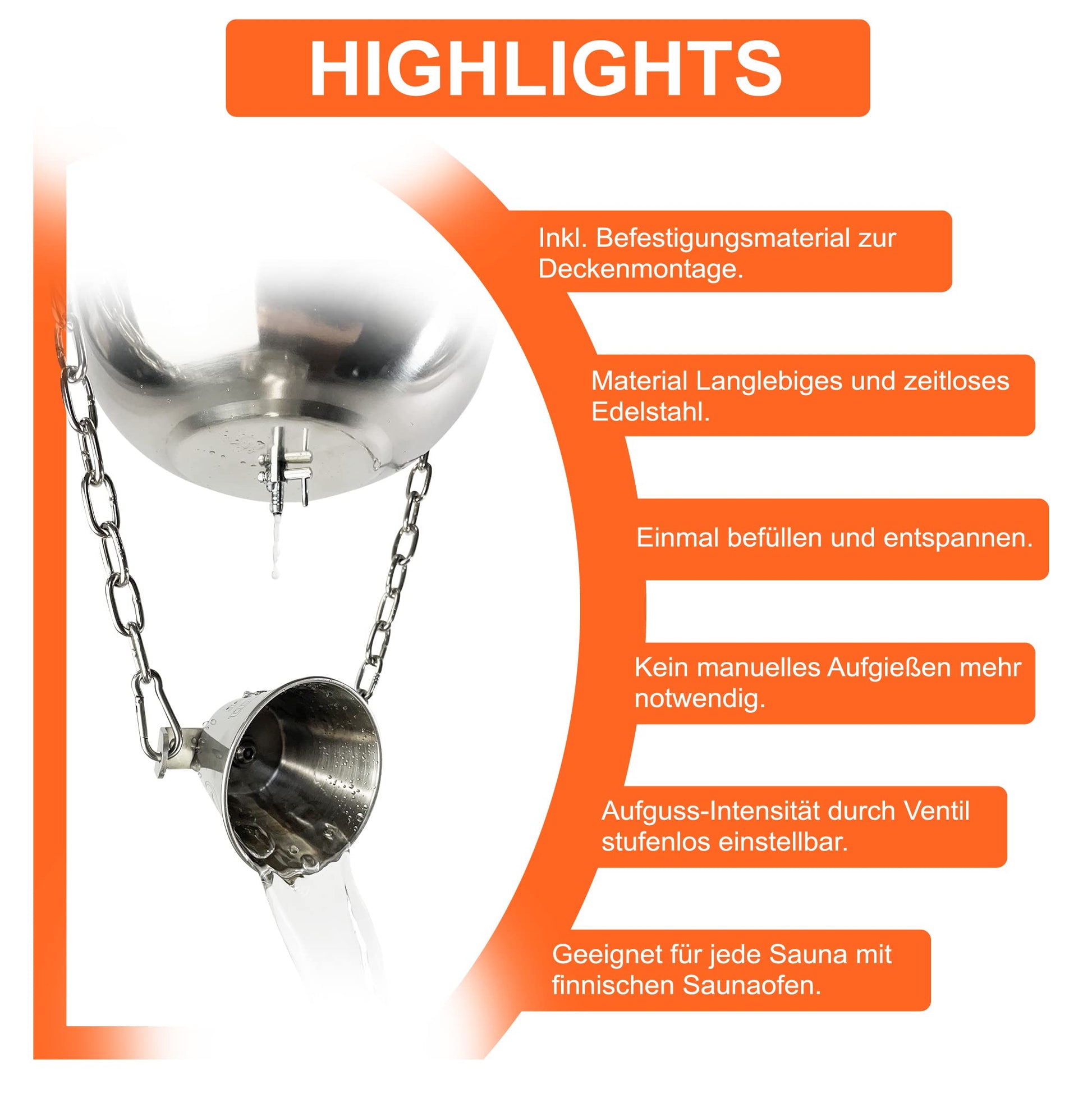 Original Steam Butler Home: Automatic infusion for the sauna made of stainless steel: Continuously adjustable intensity