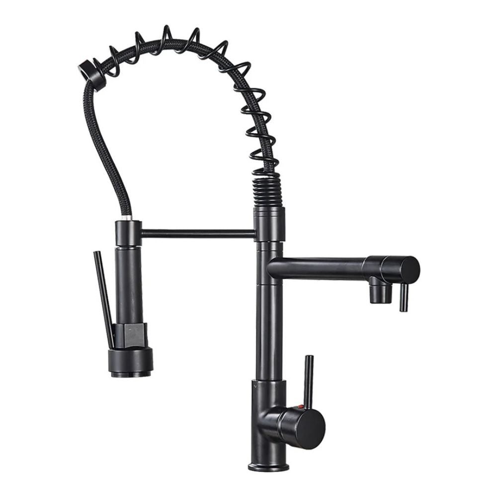 Rozin kitchen faucet with 2 spouts | Pull-out, single lever mixer for hot & cold water (black)