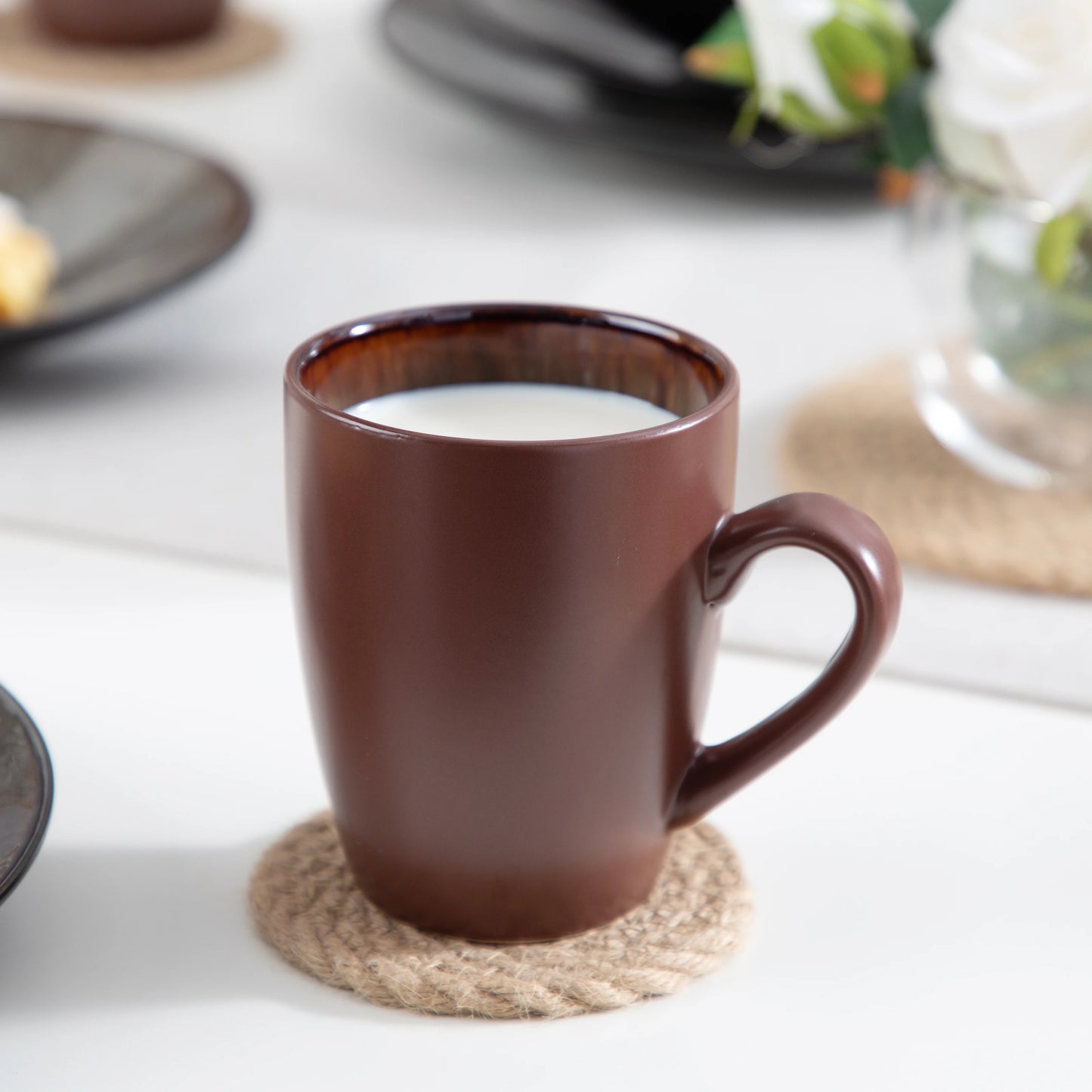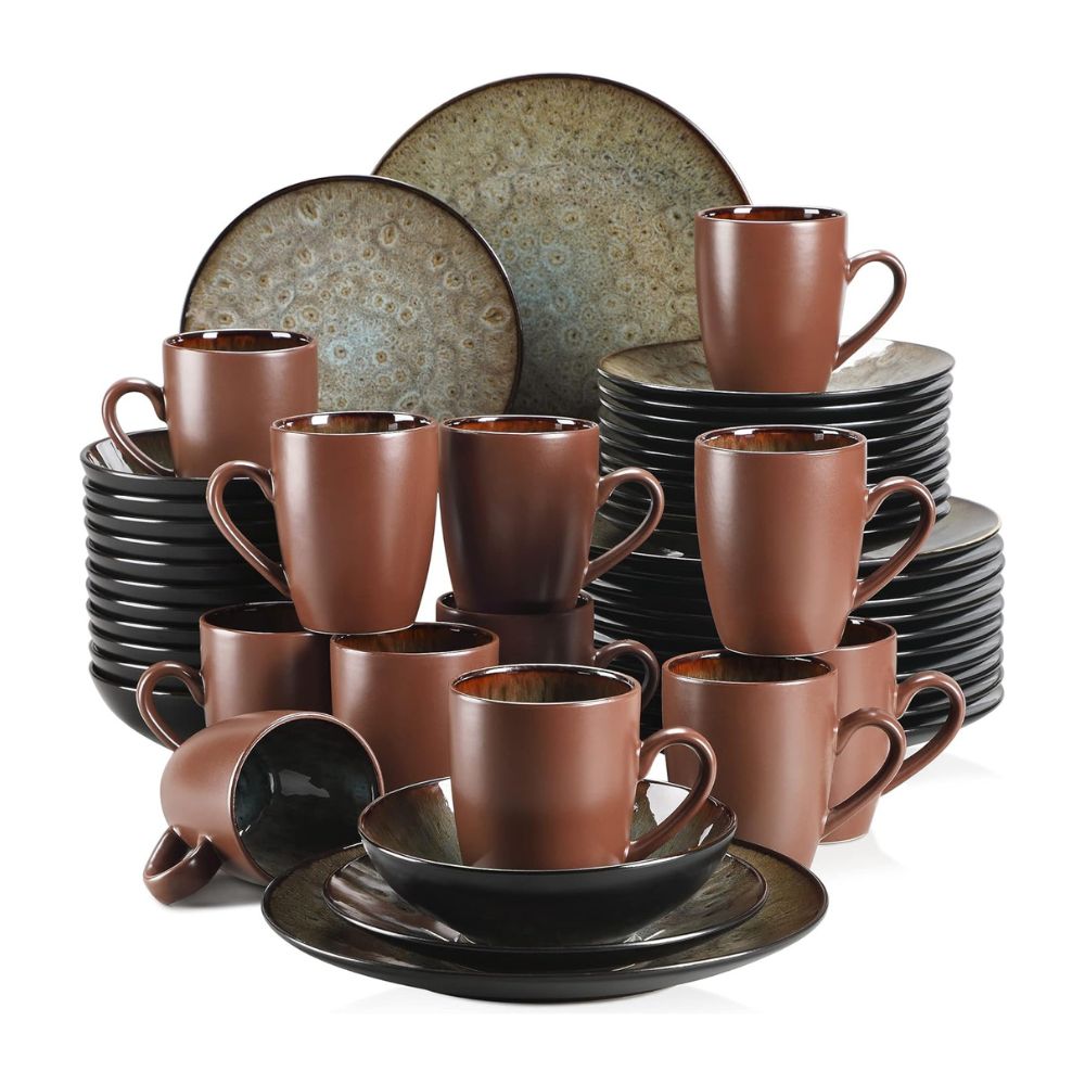 VANCASSO BUBBLE 48-piece Vintage Ceramic Dinnerware Set | Plates, Bowls & Cups in Brown