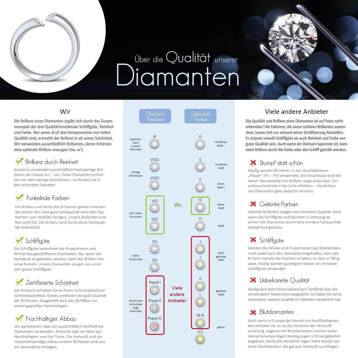 AMOONIC diamond ring for women including luxury case: 0.08 carat SI1/H (585 white gold)