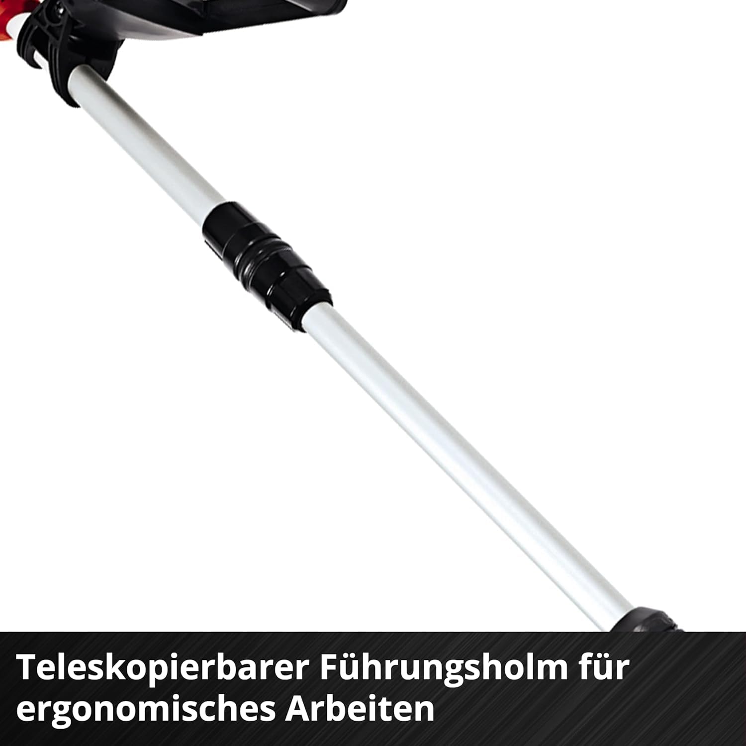 - Teleskop-Führungsholm & Zusatzgriff mit integriertem Messerfach (20 Messer inkl.)