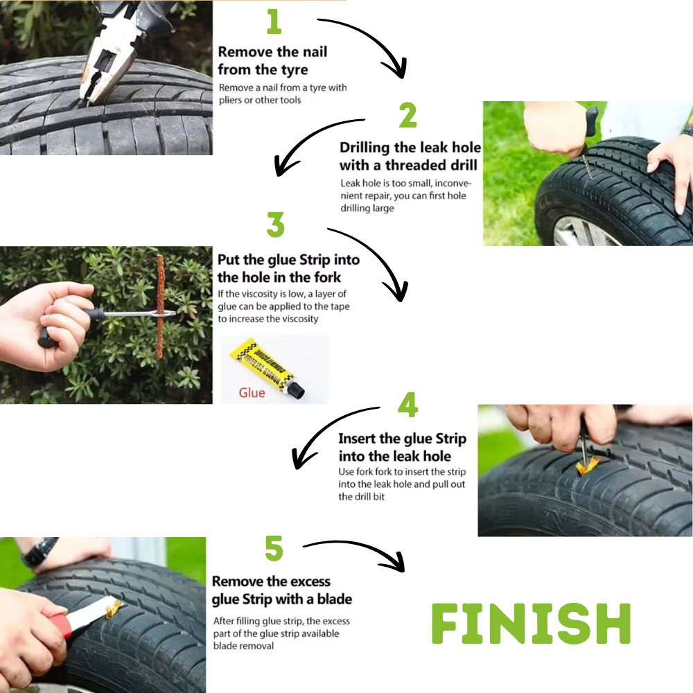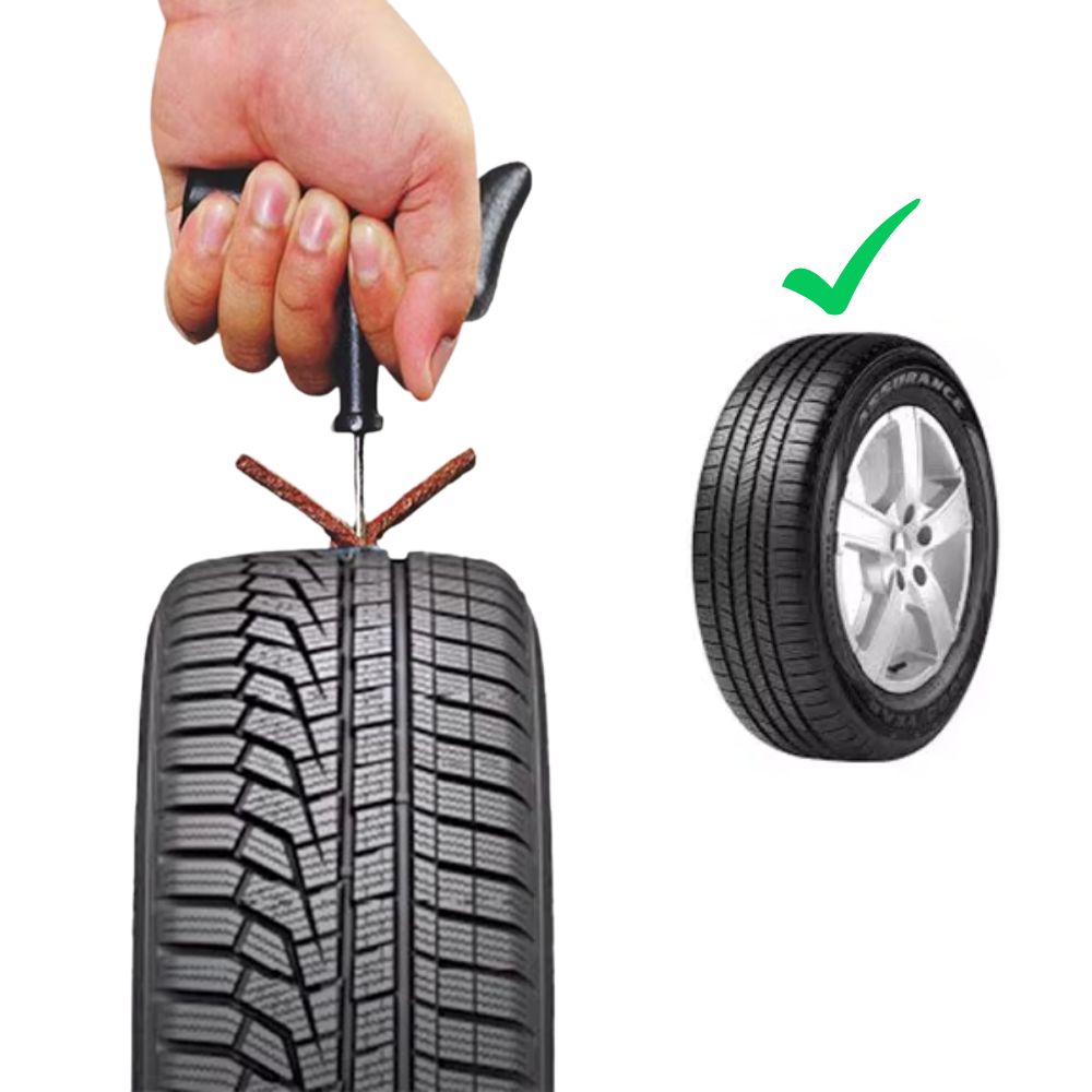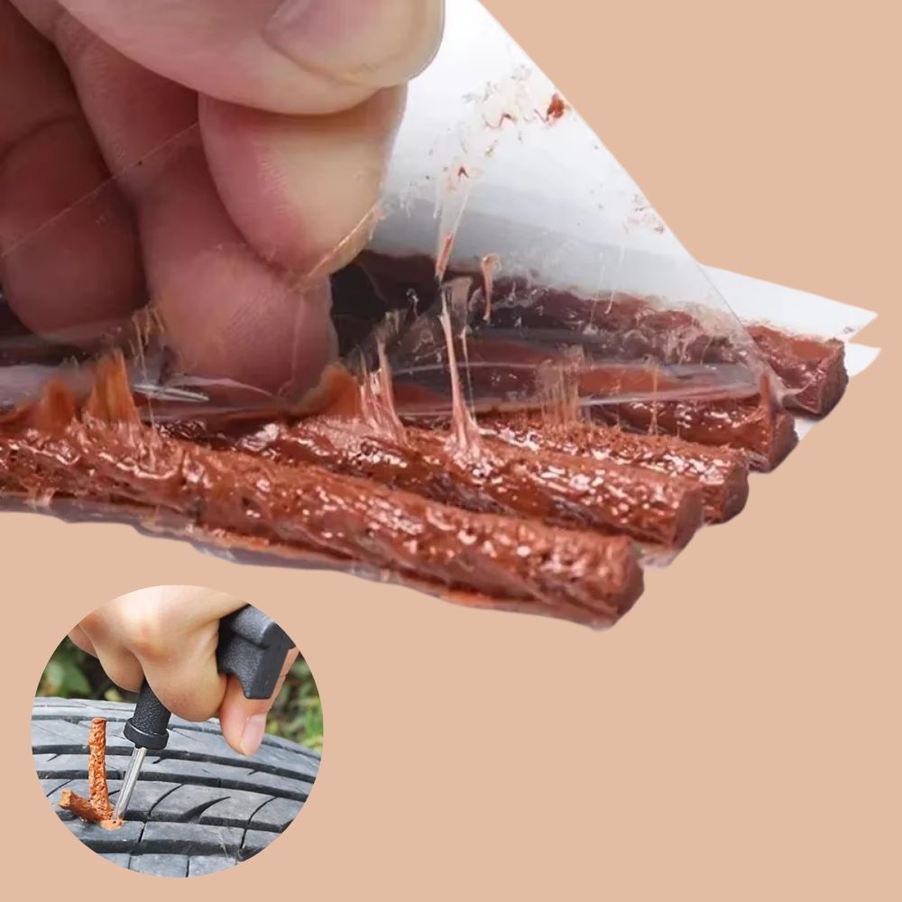 Janne Ahrens Ich habe meinen Reifen mit diesem Kit repariert und viel Geld gespart. Es hilft, wenn Sie der Nadelspitze mit dem Gummist reifen etwas Gummi lösung hinzufügen.