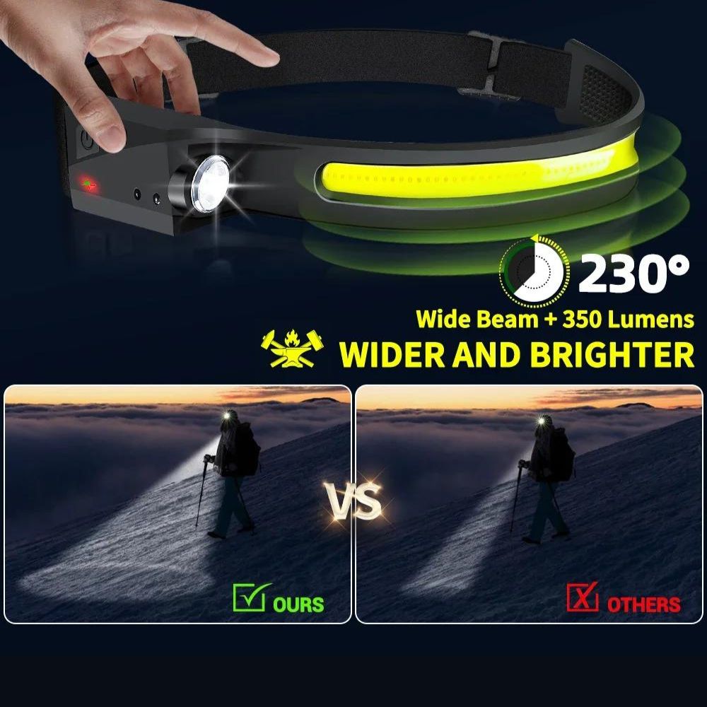 Cette lampe frontale à capteur LED compacte et puissante est idéale pour le camping, la pêche, la randonnée et les urgences.