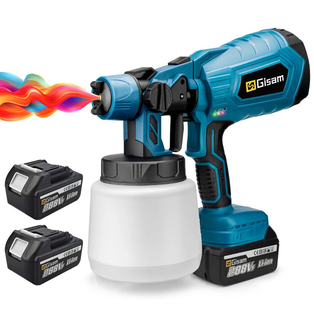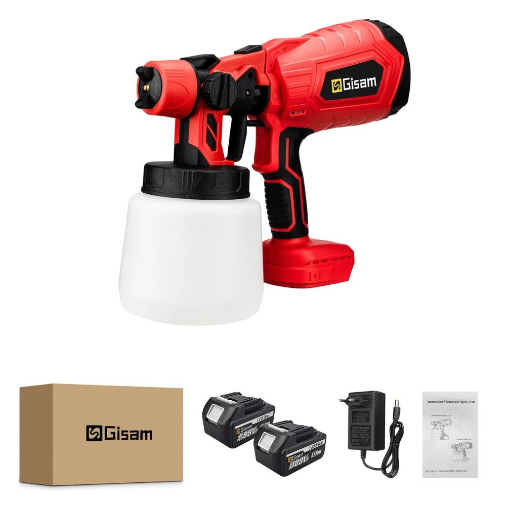 Système de pulvérisation de peinture à batterie GISAM (1000 ml) avec 2 grandes batteries, 4 buses | Compatible avec la batterie Makita 18V