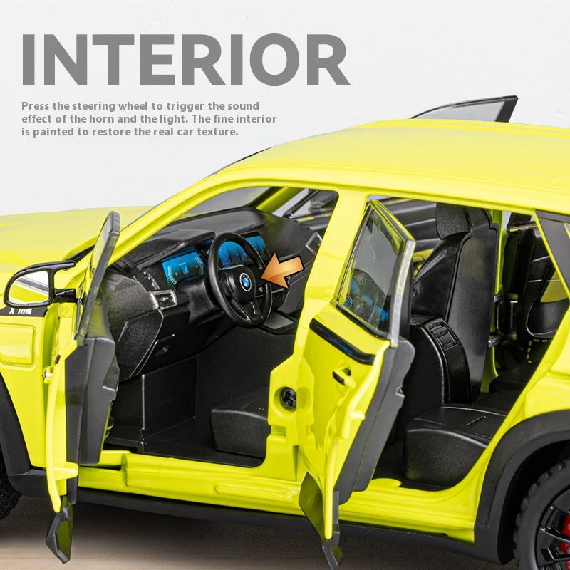 Voiture jouet BMW XM (1:24) en alliage d'aluminium avec lumières, son et recul | Parfait pour les collectionneurs (GIF2)