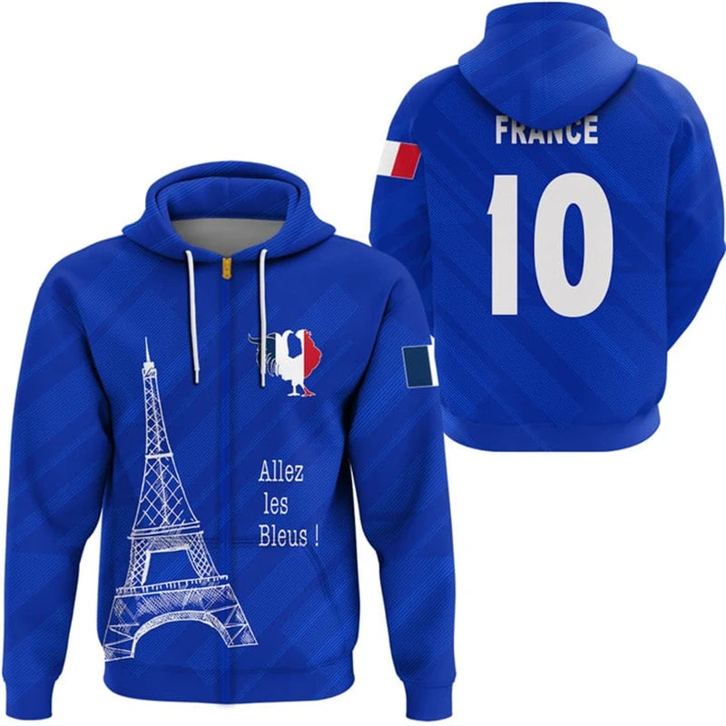 Frankreich ZIP Sport Hoodie 3D: Unisex