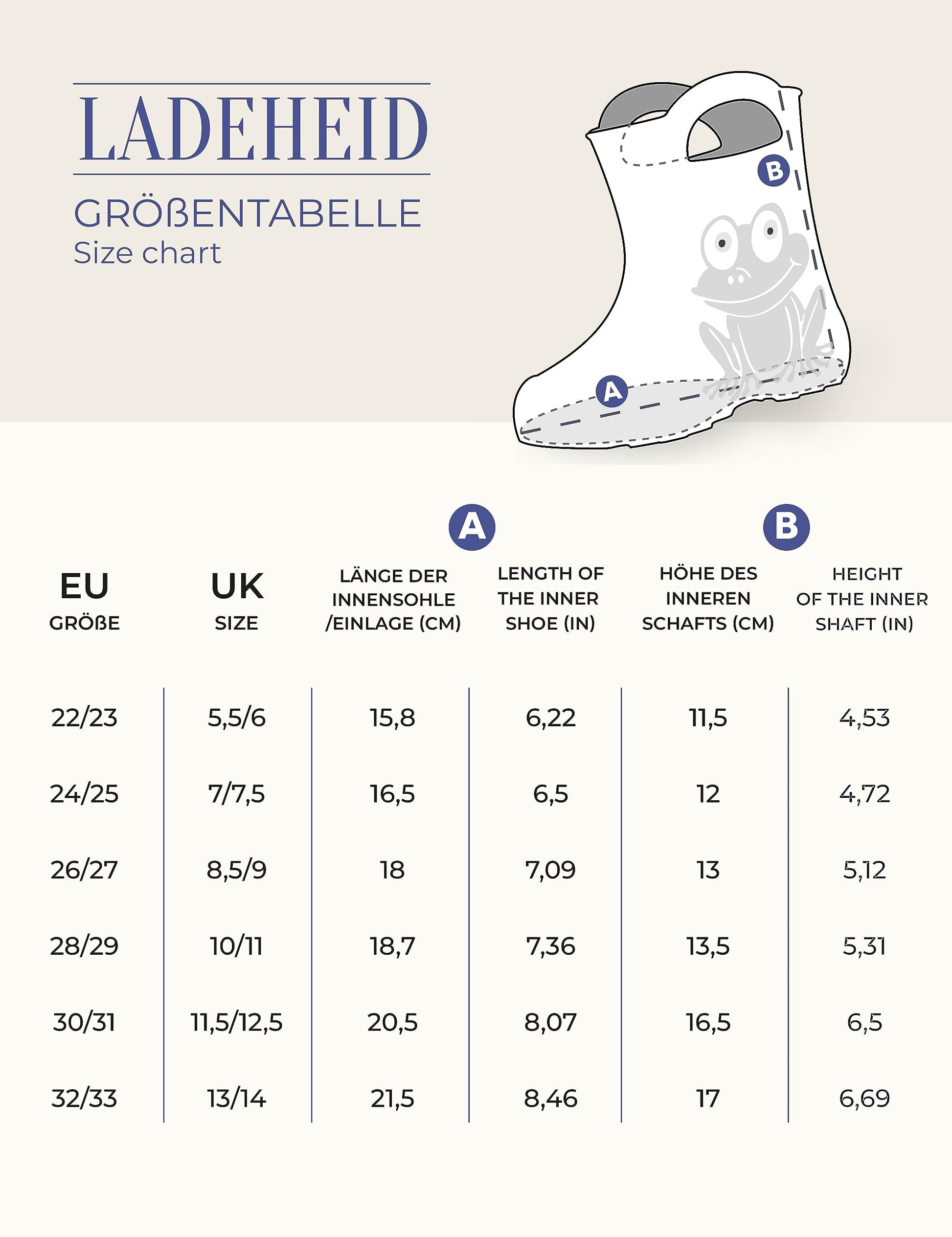 LADEHEID Eva Kinder Gummistiefel für Jungen und Mädchen: Wasserdichte Regenstiefel