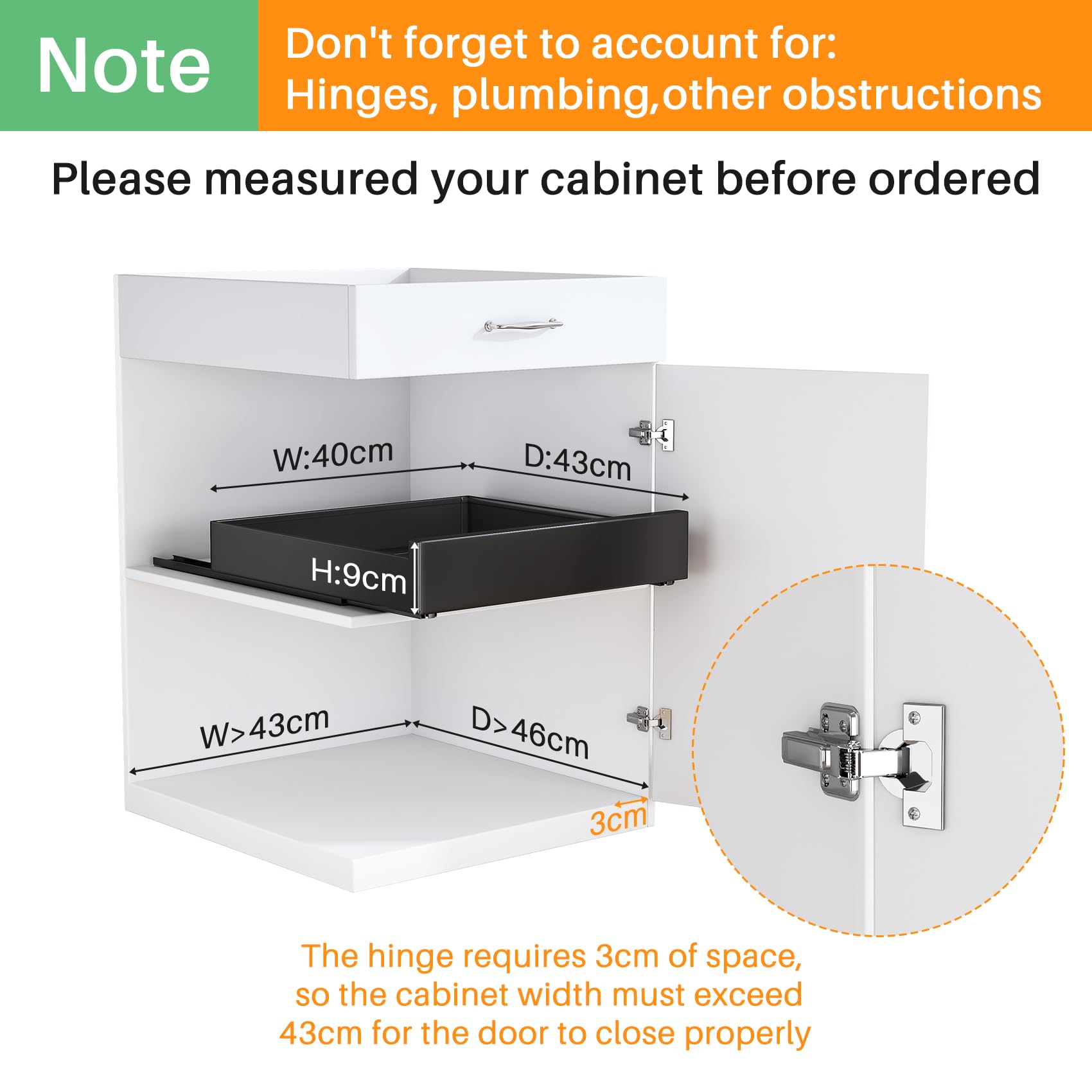 Praktisches Maß: 40×43×9cm (B×T×H), ausziehbar bis 70cm Tiefe