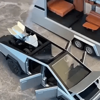 TESLA Cybertruck Modellauto (1:32) mit Trailer und Beach Motorrad | aus Druckgussmetall mit Licht und Sound