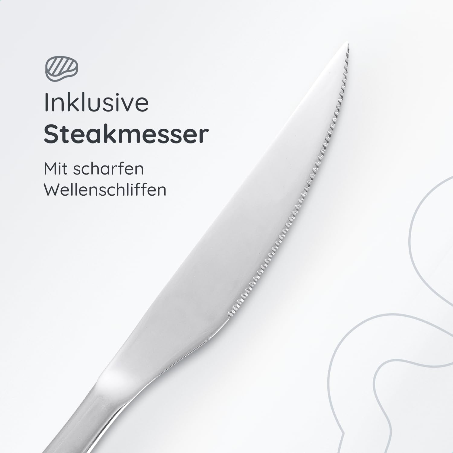 Für 12 Personen: Ergonomisch geformtes Besteck für stilvolles Essen im Alltag & bei Anlässen