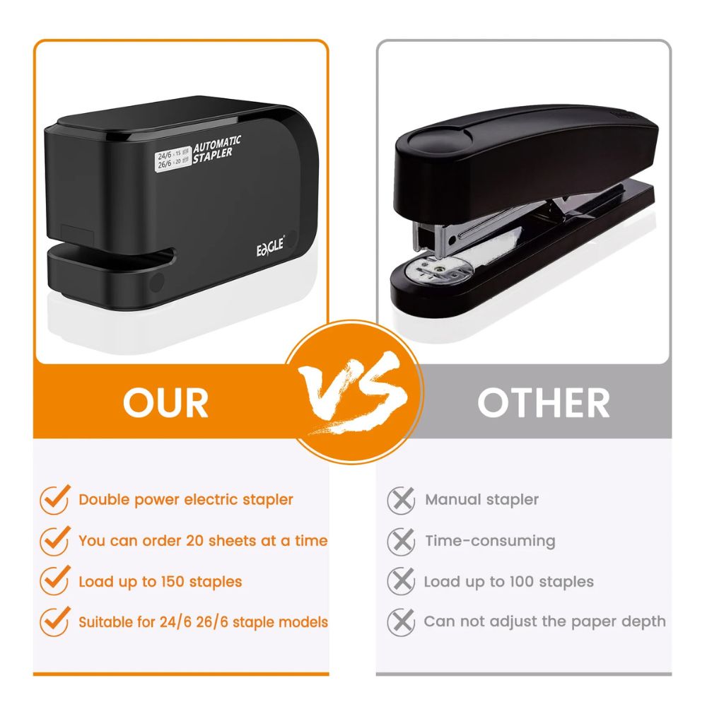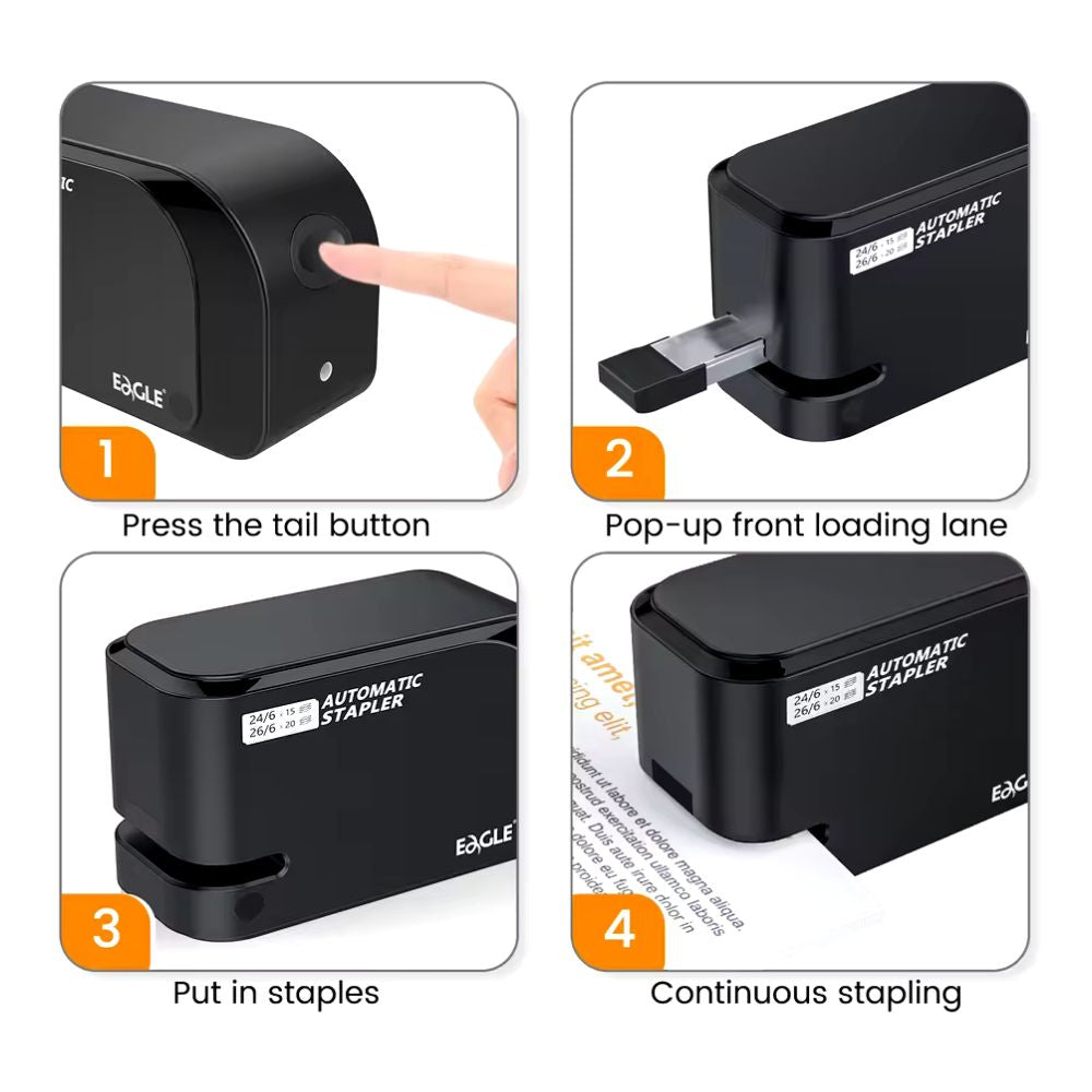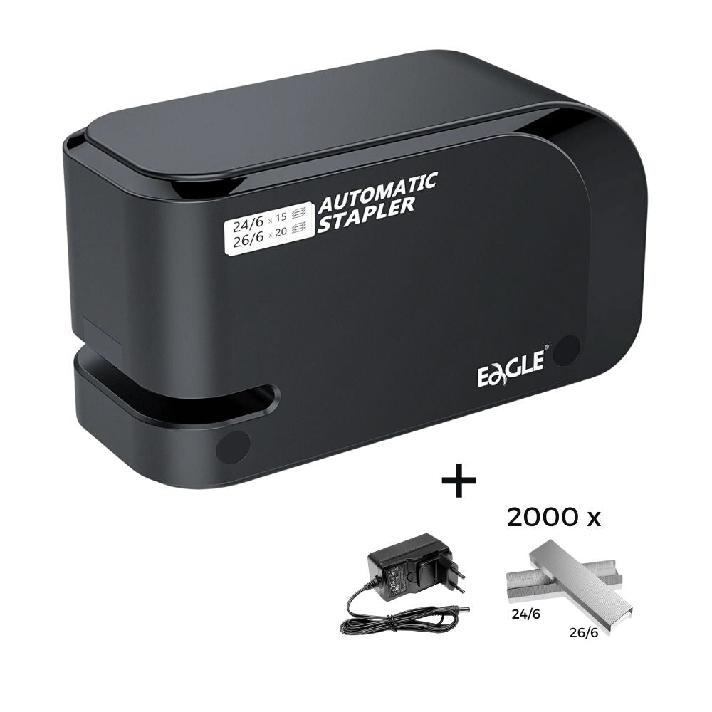 Mit dem EAGLE elektrischen Tacker erledigen Sie Ihre Büro- und Schulaufgaben mühelos! Dank seines leistungsstarken Motors und der automatischen Heftfunktion ist er die perfekte Wahl für schnelles und präzises Tackern.