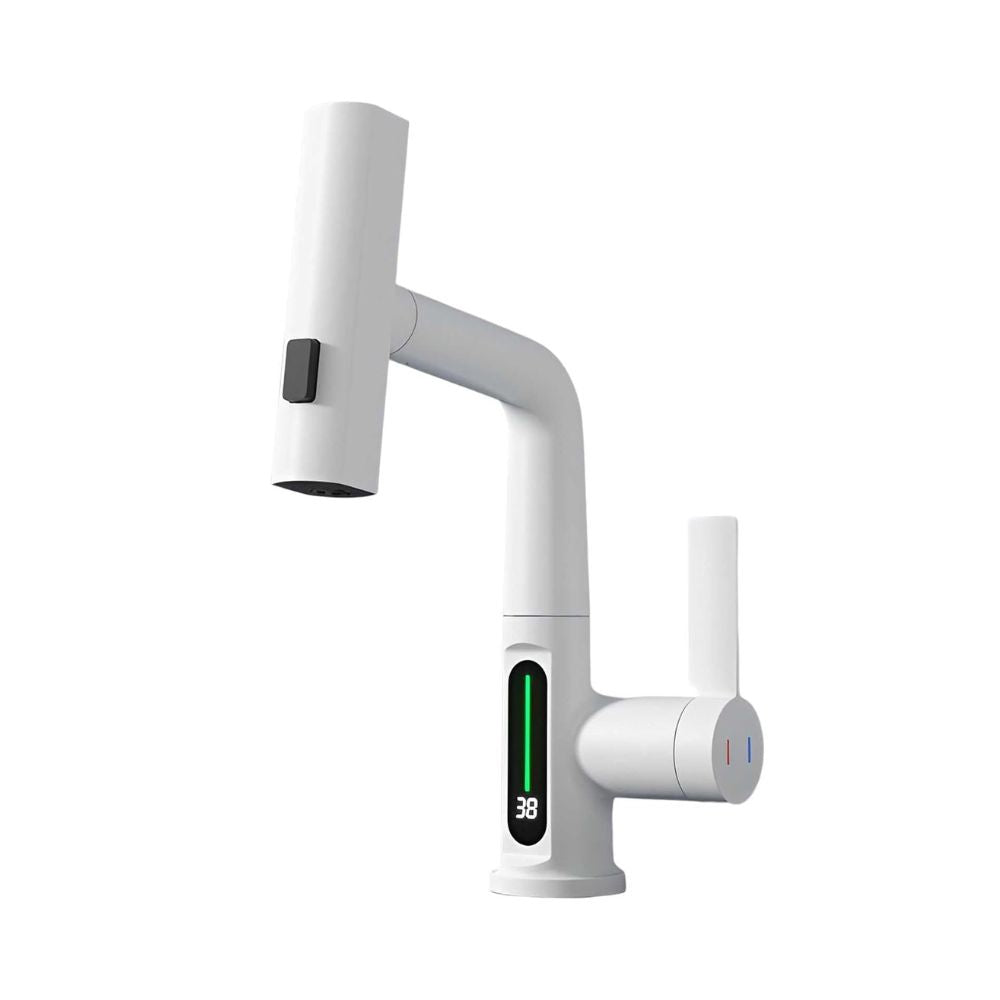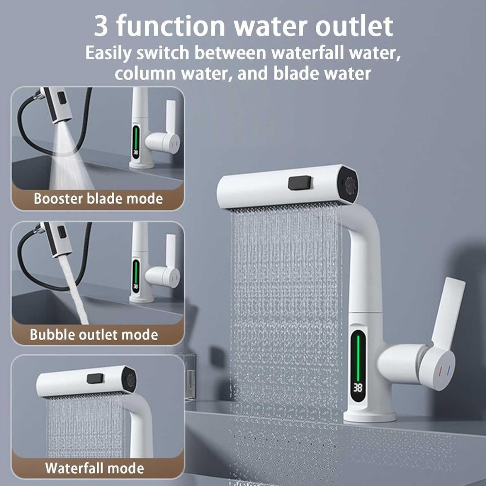 Vielseitige Anwendung: Dieser neueste drehbare Wasserfallhahn bietet eine intelligente Erfahrung. Erhältlich in mattem Schwarz, Weiß, Chrom oder Grau.