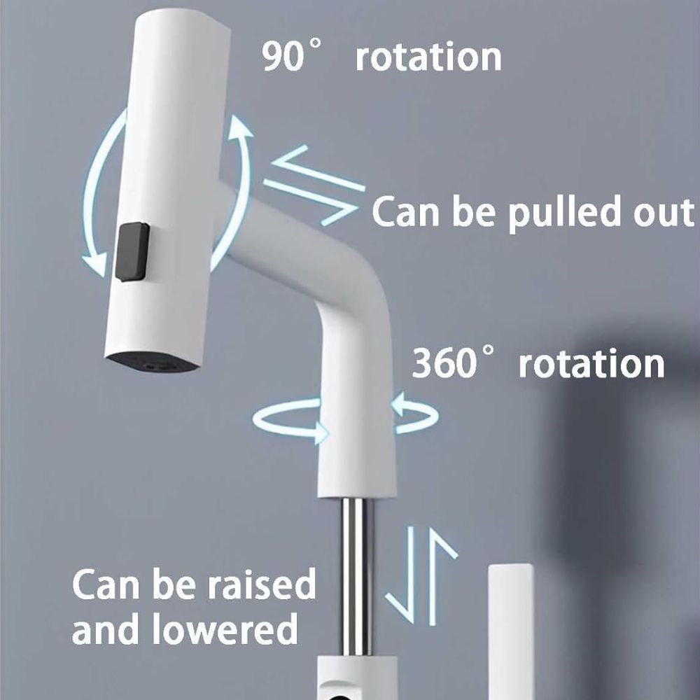 Durchdachtes Design: Dieser Wasserhahn bietet eine 90° Drehung, Ausziehen und Anheben sowie einen 360° drehbaren Schwenkarm mit einem ausziehbaren Rohr von 60cm. Ein Wasserhahn, der alle Ihre Bedürfnisse erfüllt!