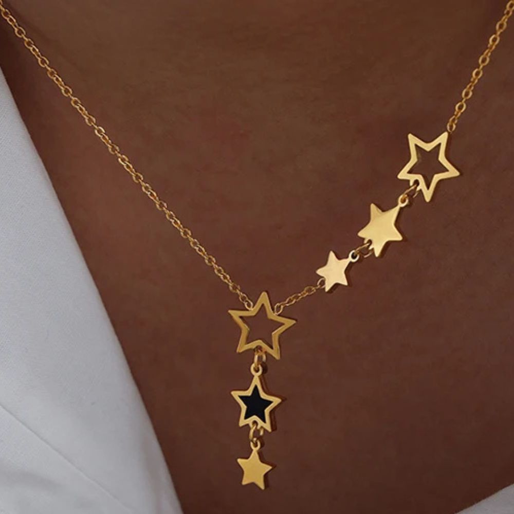 Trendy Damen Stern Anhänger Halskette | Titanium-Edelstahl vergoldet, schwarzes Acryl