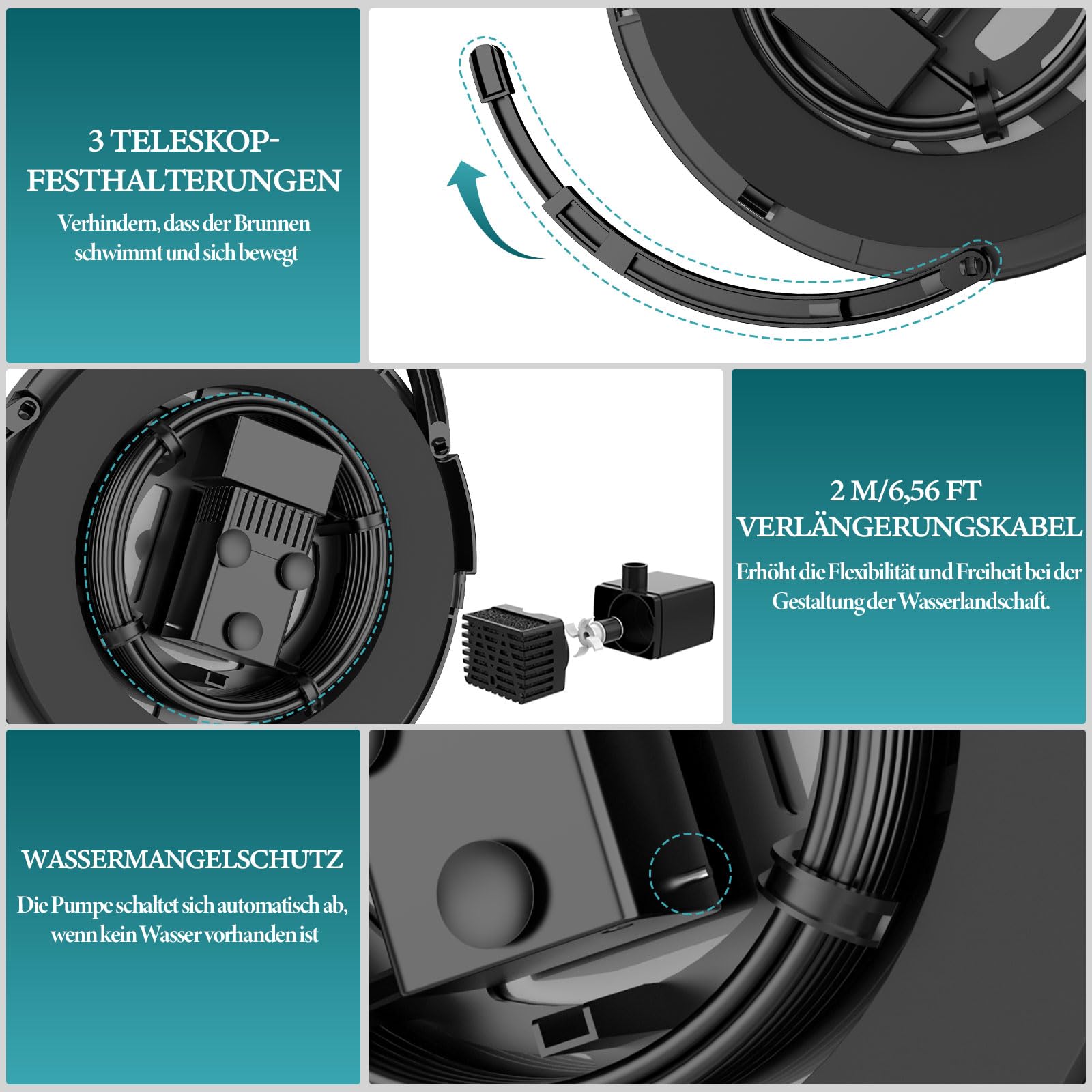 Flexible Düsenwahl: Mehrere Aufsätze zur Einstellung von Höhe & Form des Wasserstrahls