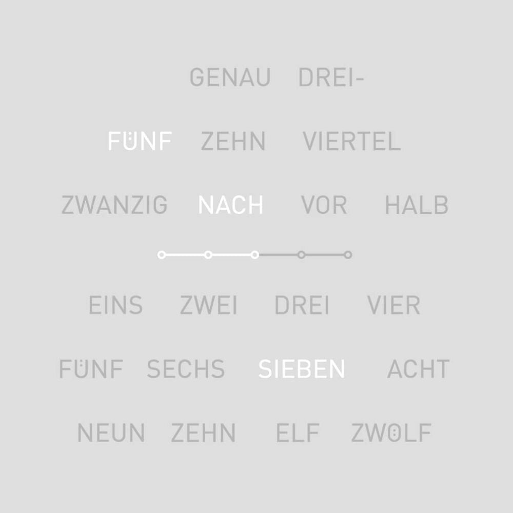 - Zeit in Worten: Anzeige wie „FÜNF NACH SIEBEN“ - auch im regionalen Dialekt einstellbar