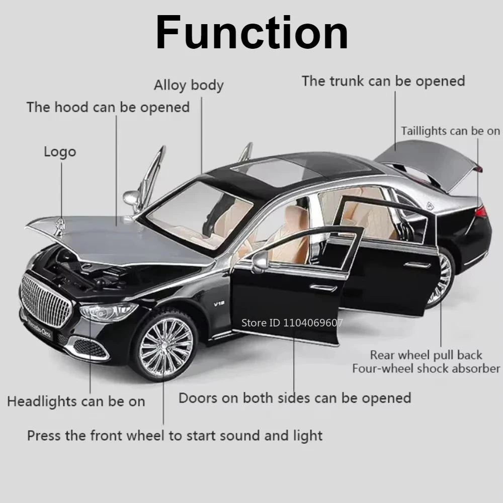 Maybach S680 Modellauto (1:24) | Licht, Sound, Türen öffnen, Rückziehfunktion, Geschenkidee
