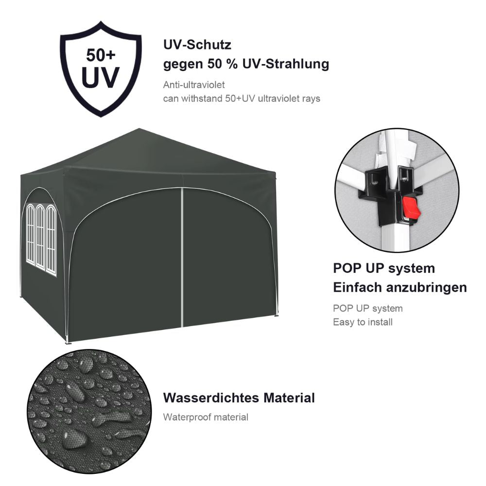 Der WOLTU 3x3m Faltpavillon mit 4 Seitenwänden bietet den idealen Schutz für Outdoor-Events und überzeugt durch seine Funktionalität und Langlebigkeit.