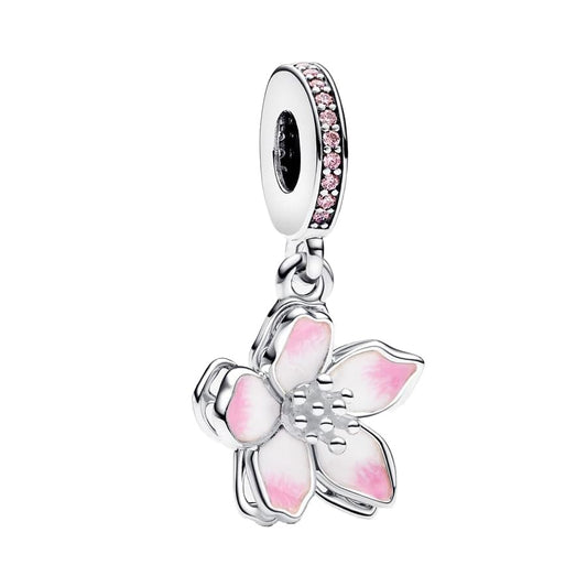 Feitery Cherry Blossom Dangle Charm Herz-Anhänger Armband zum Muttertag