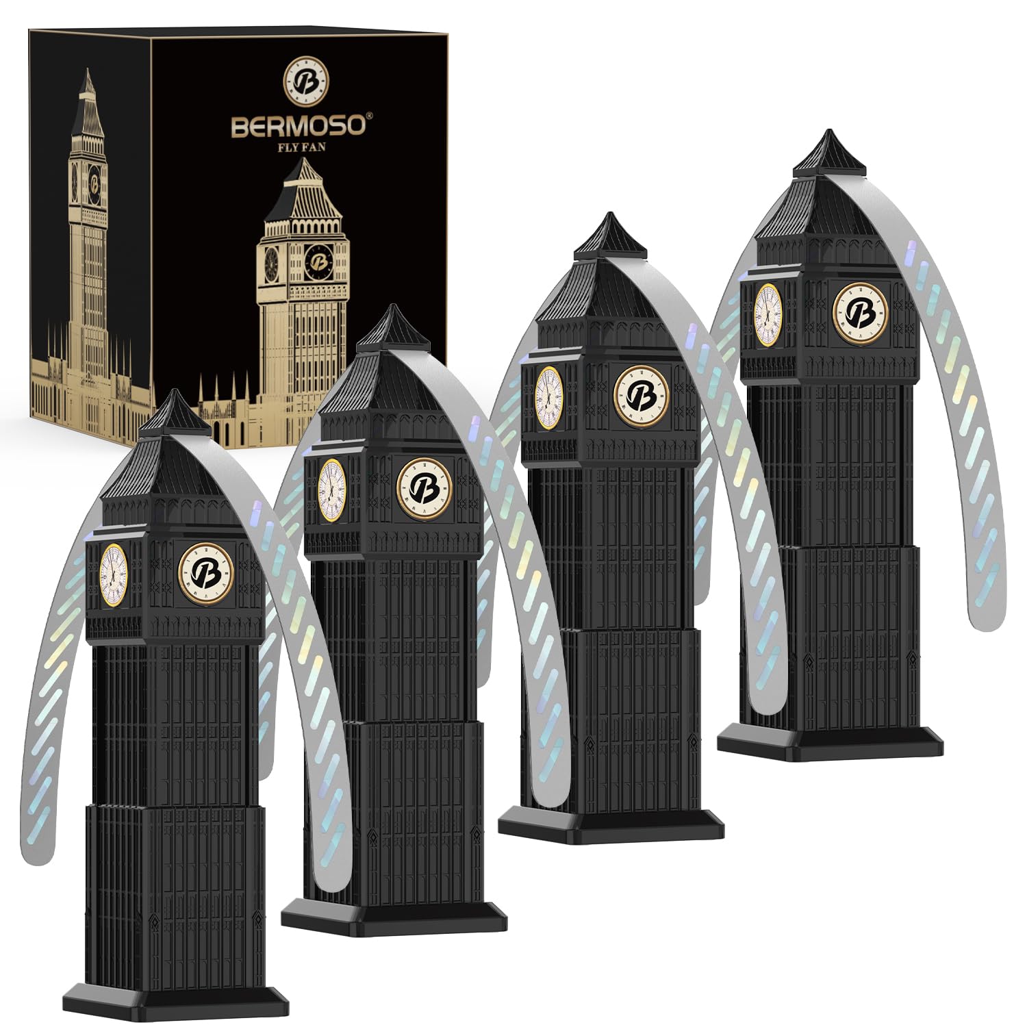 Fliegenwedler, 4 Stück Fliegenvertreiber Fliegenabwehr Ventilator, Fliegenventilator Faltbar und Aufhängbar Insektenschutz Insektenschutzventilator mit holografischen Flügeln