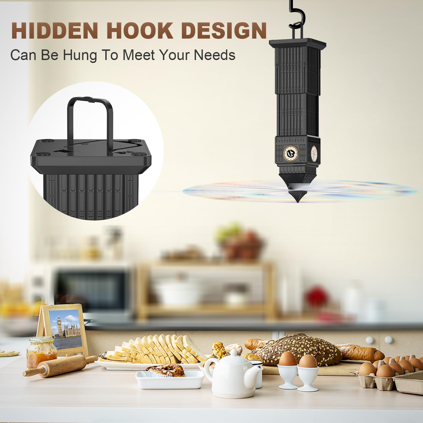 - Aufhängbarer und Weit Verbreiteter: Die-fliegenfallenventilator für Outdoor-Tische sind mit einem Haken-Design, um das Produkt verkehrt herum aufzuhängen,was es einfach macht, sie an Wänden, Ästen, Zelten und anderen Orten aufzuhängen. Verabschieden Sie sich von lästigen Dingen und genießen Sie eine komfortable Umgebung mit dem Fliegenventilator