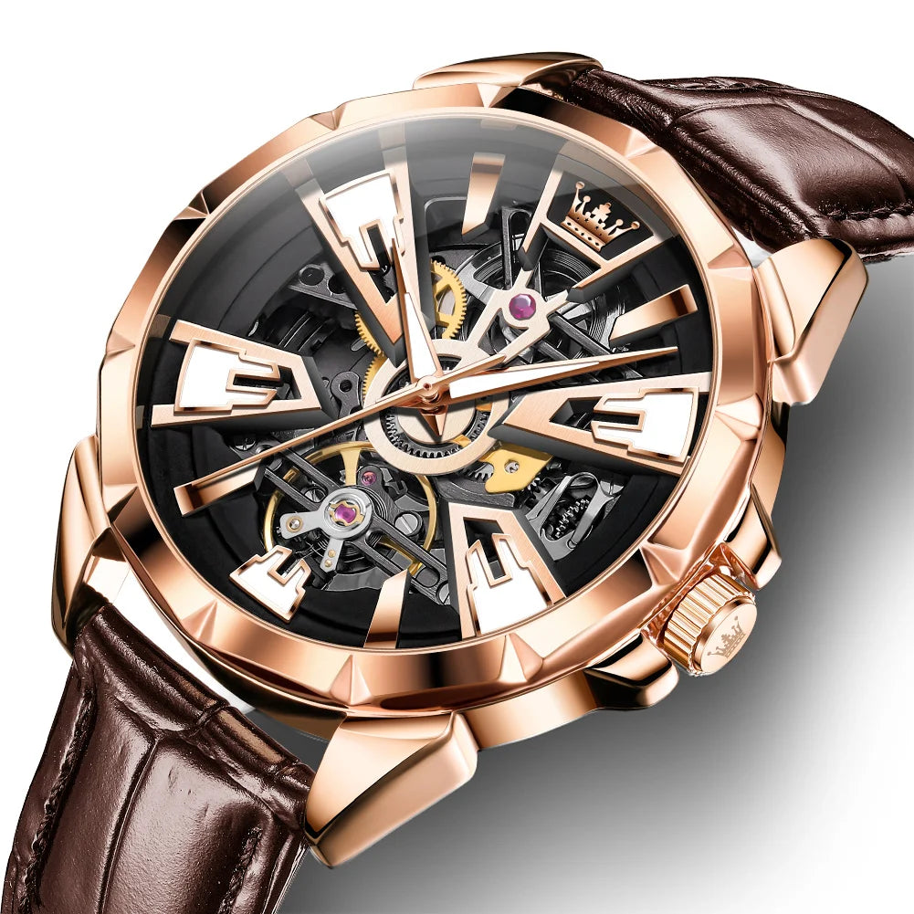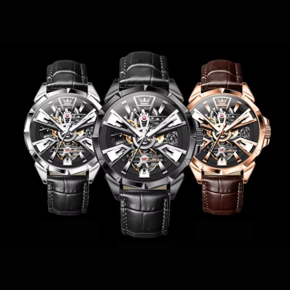 Tourbillon Automatik Mechanische Herrenuhr | Edelstahlgehäuse, Lederarmband, Leuchtzifferblatt, Wasserdicht (GIF4)