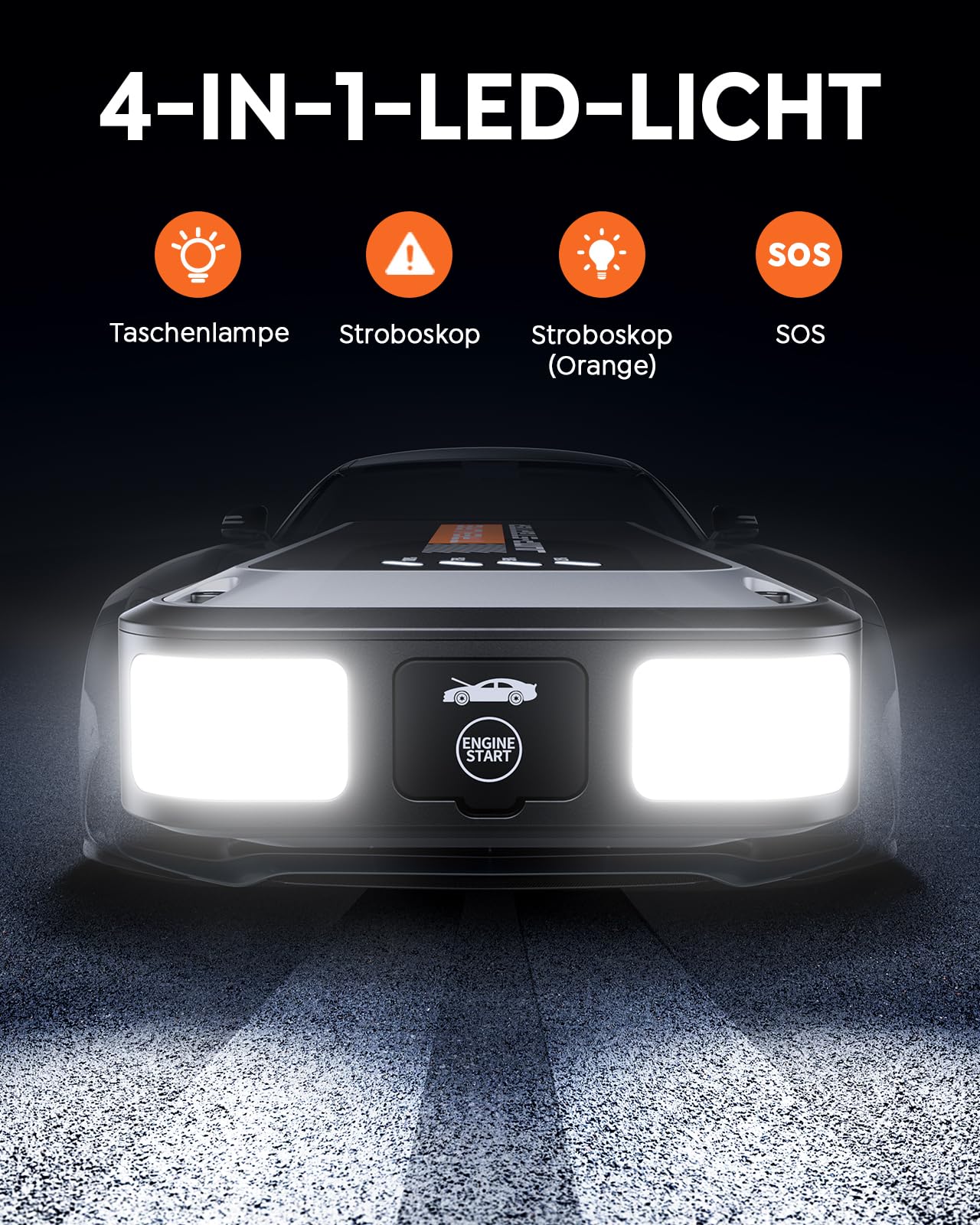 4 LED-Modi: Beleuchtung, weiß/orange Strobe, SOS - perfekt für Pannenhilfe und Outdoor-Nutzung